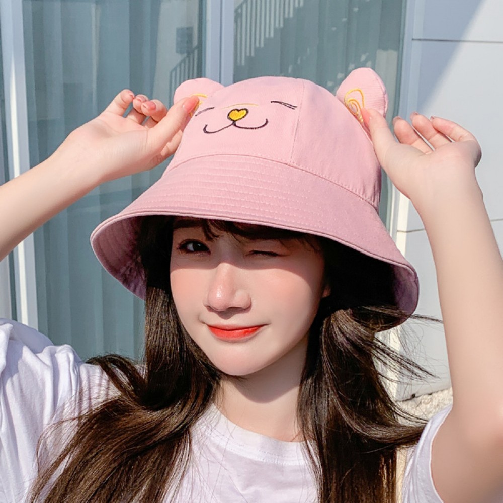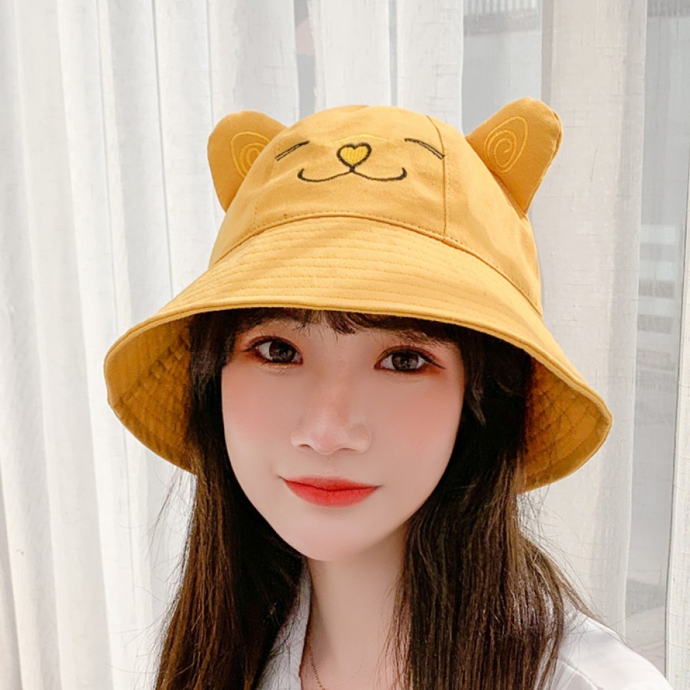Spring new embroidered cat ears fisherman hat female cute sunscreen sun hat sun hat