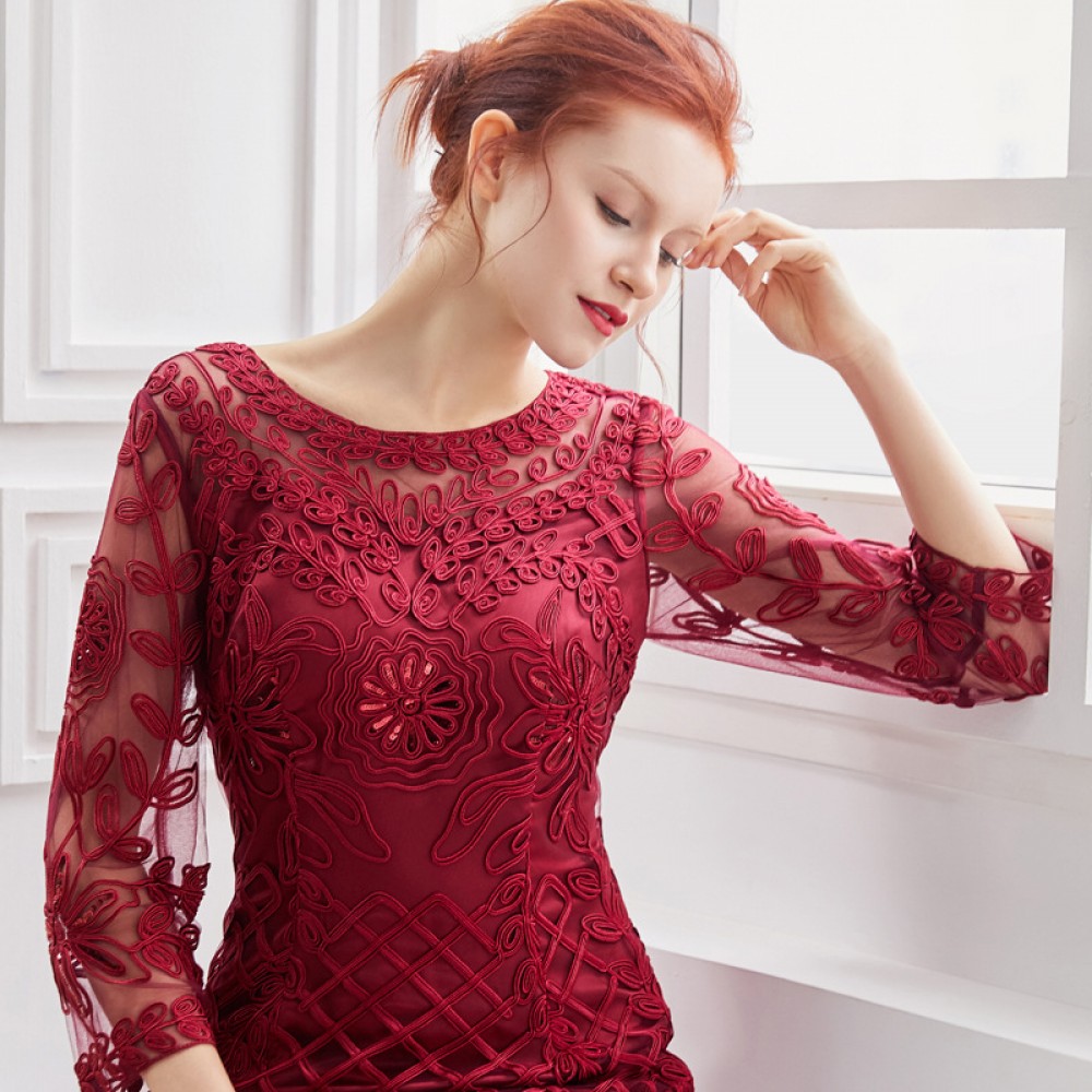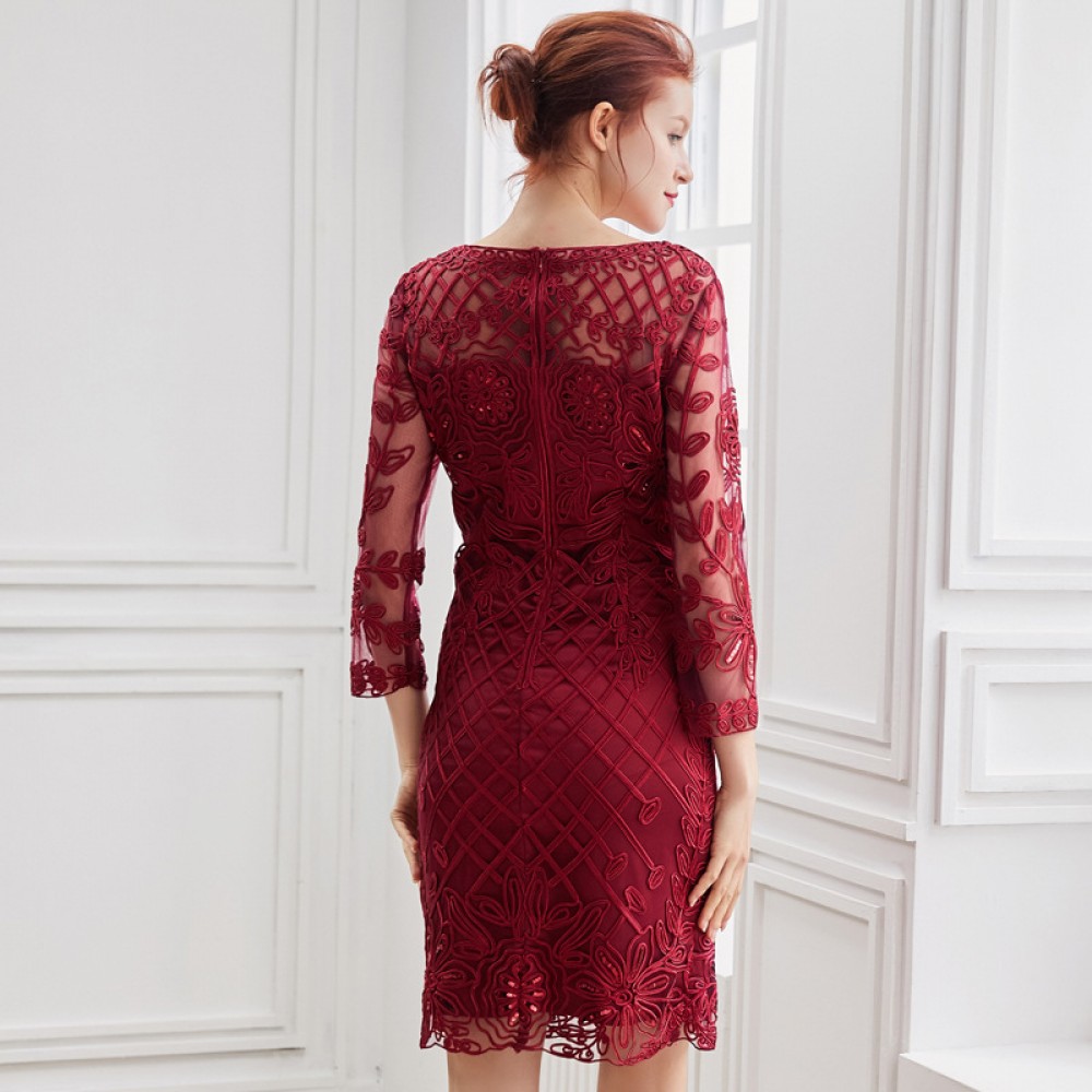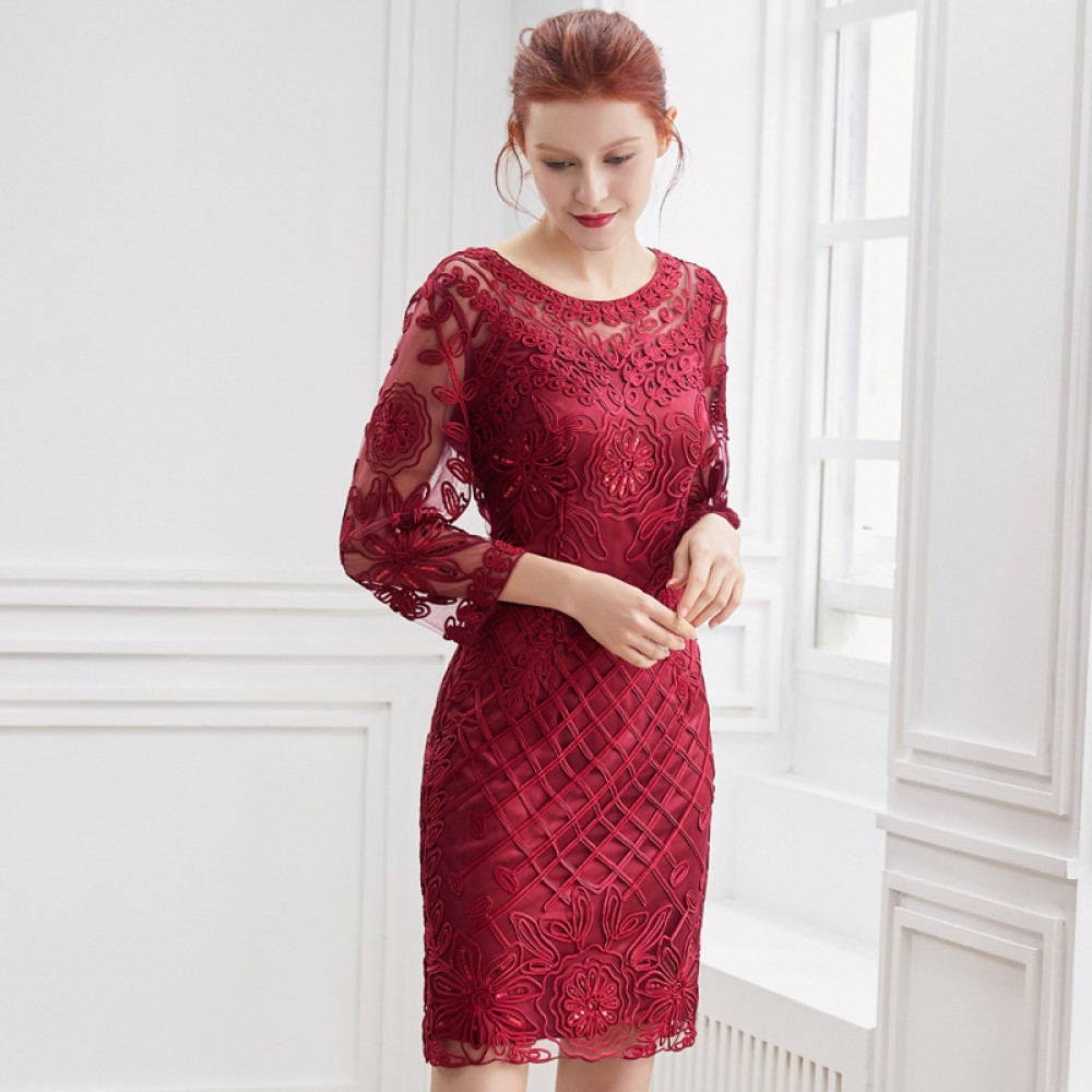 Spring new mesh sequin embroidery round neck was thin package hip skirt women's one-step skirt dress