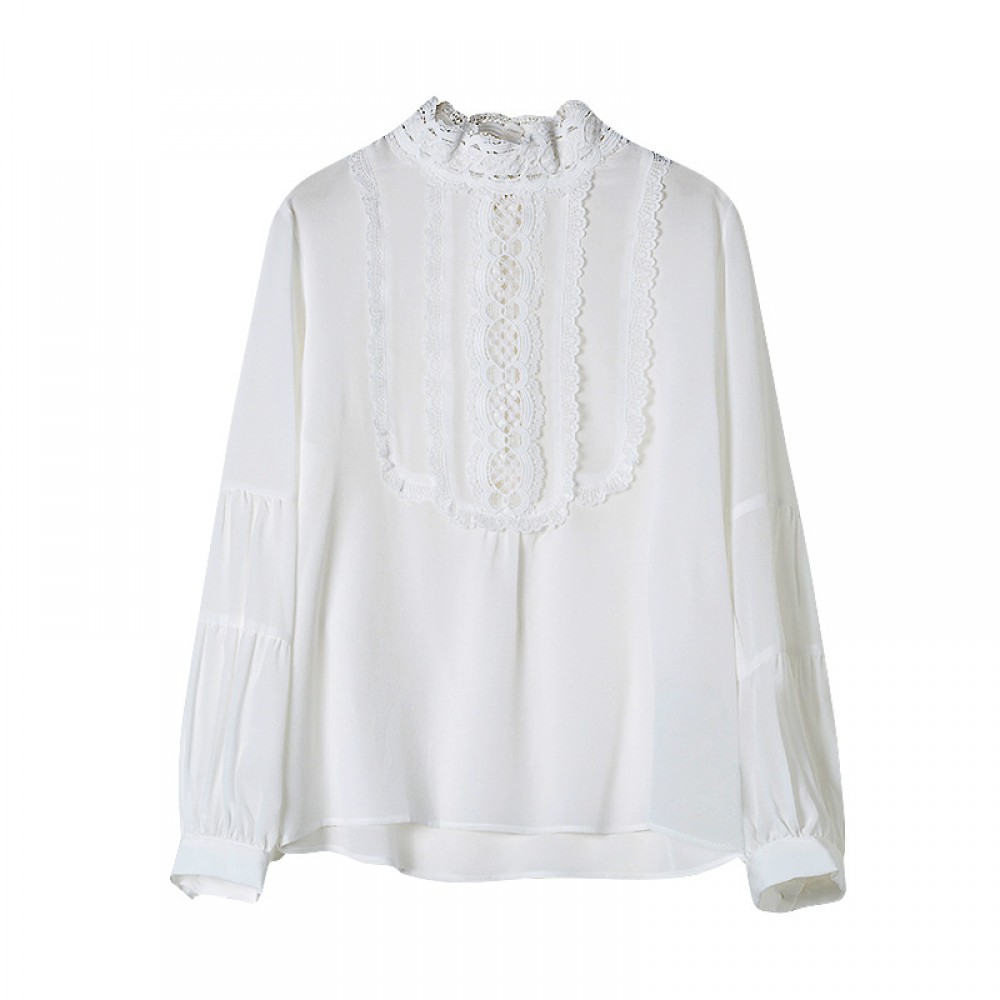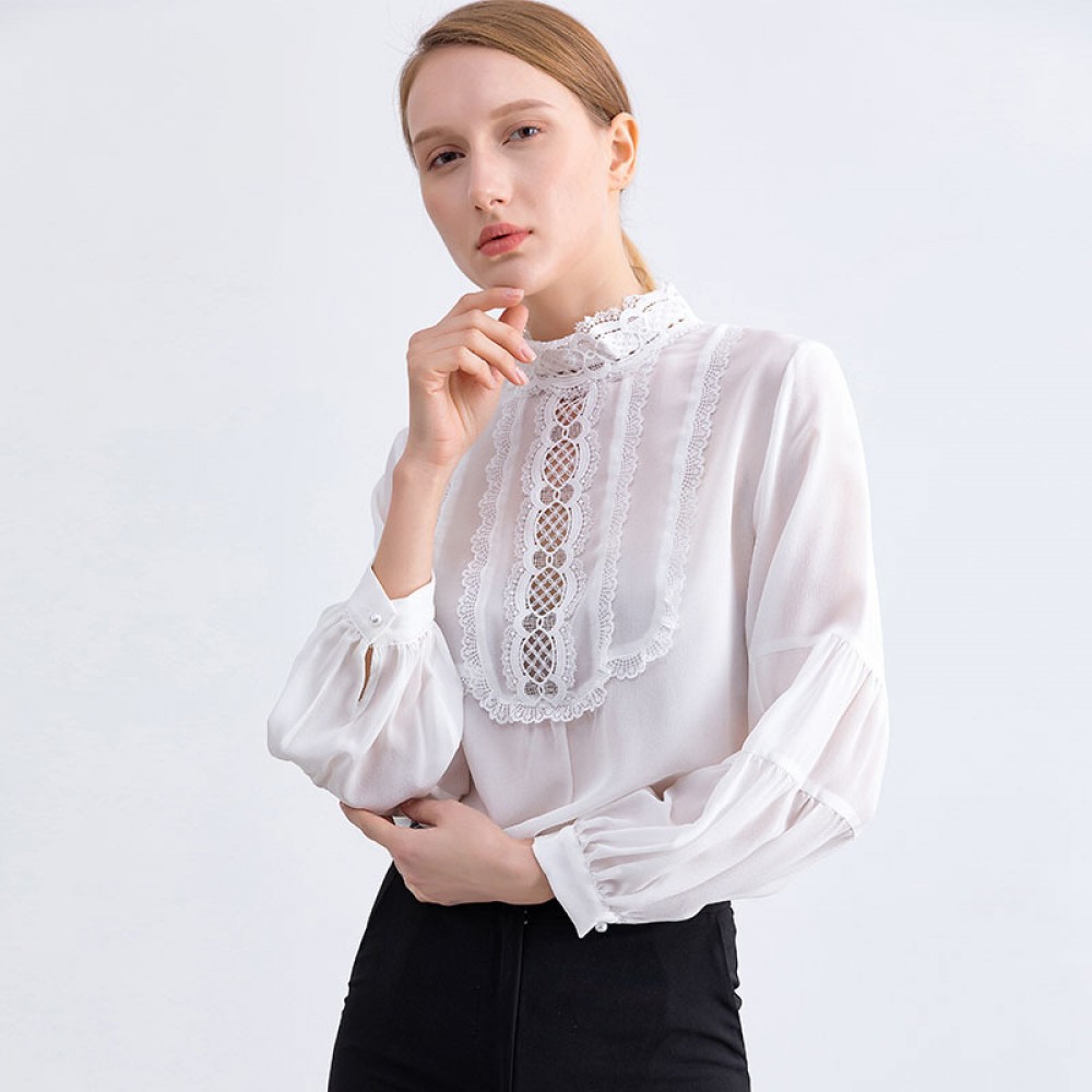 Spring new niche silk lace shirt ladies long sleeve shirt mulberry silk white shirt