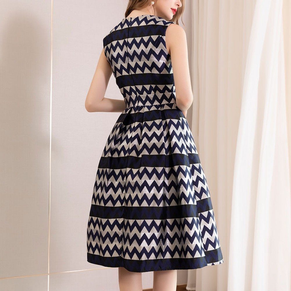 Spring new sleeveless vest A-line dress temperament was thin stripe long skirt high-end women's clothing