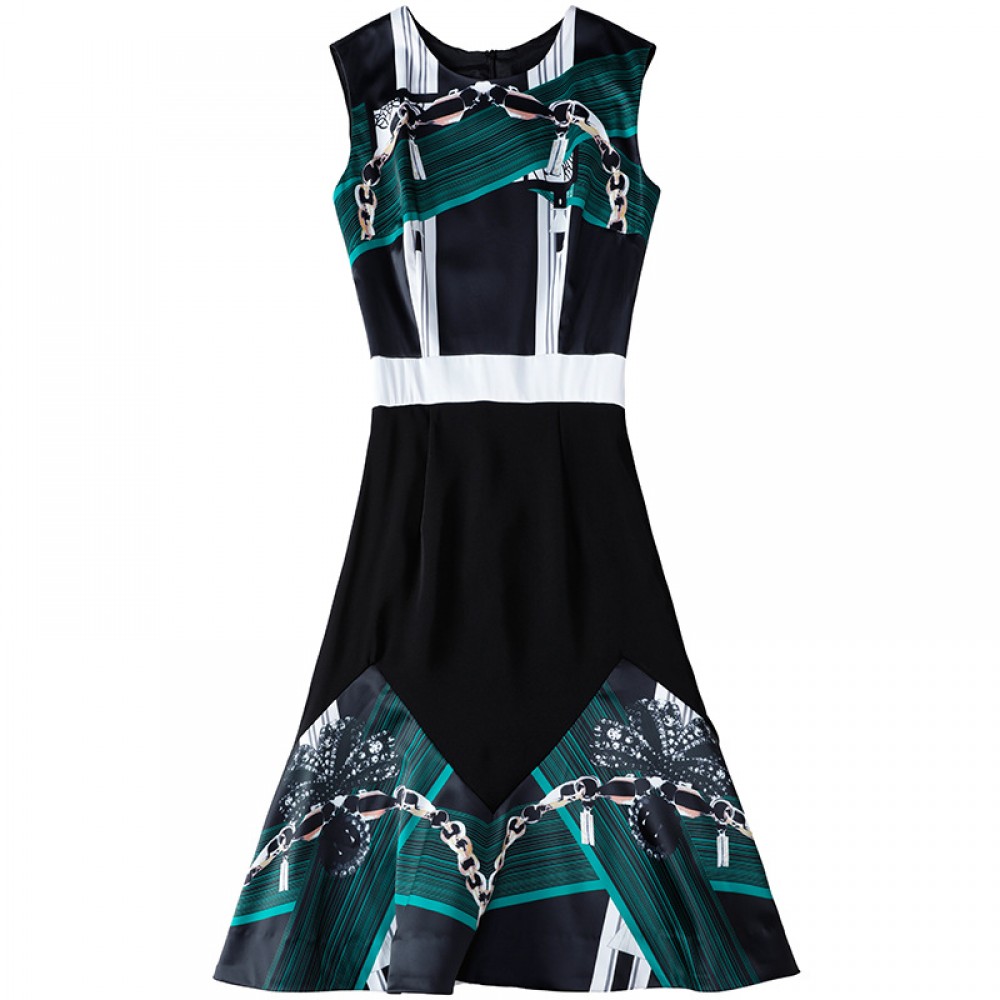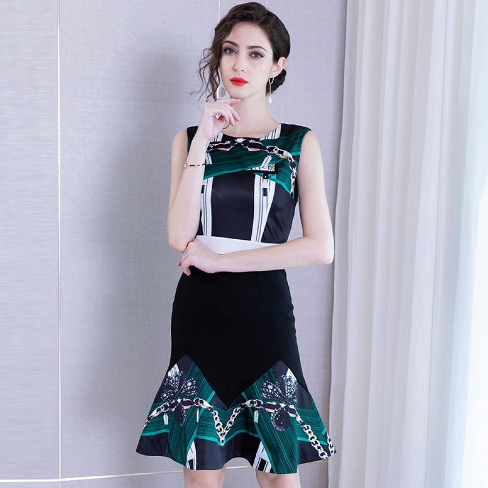 Spring sexy high waist slim ruffled round neck dress printing was thin bag hip temperament fishtail skirt women