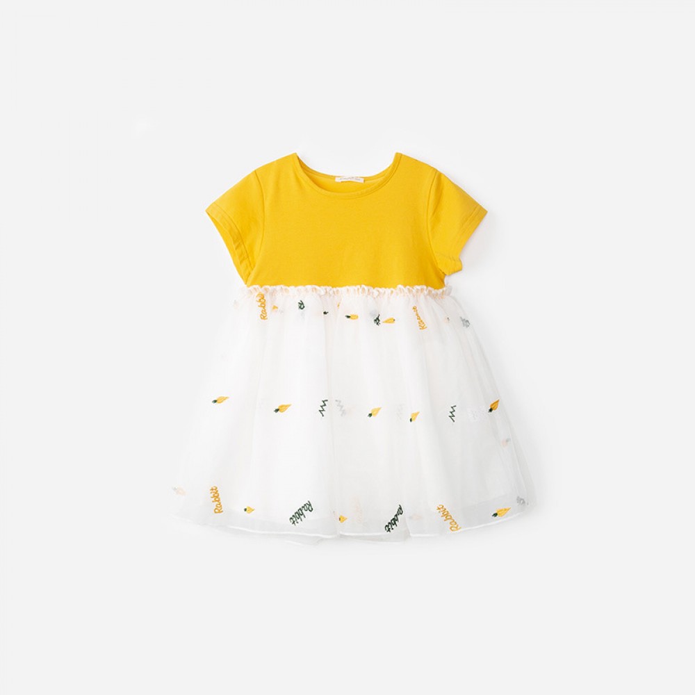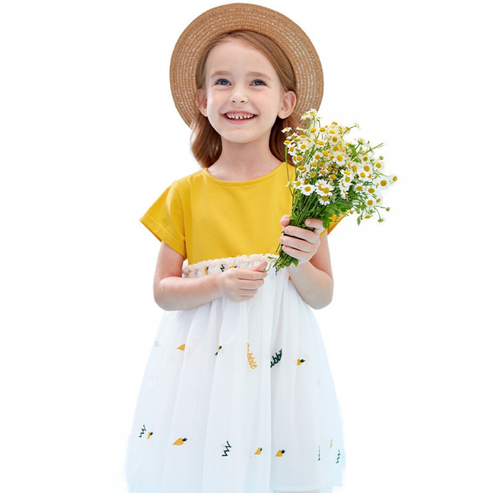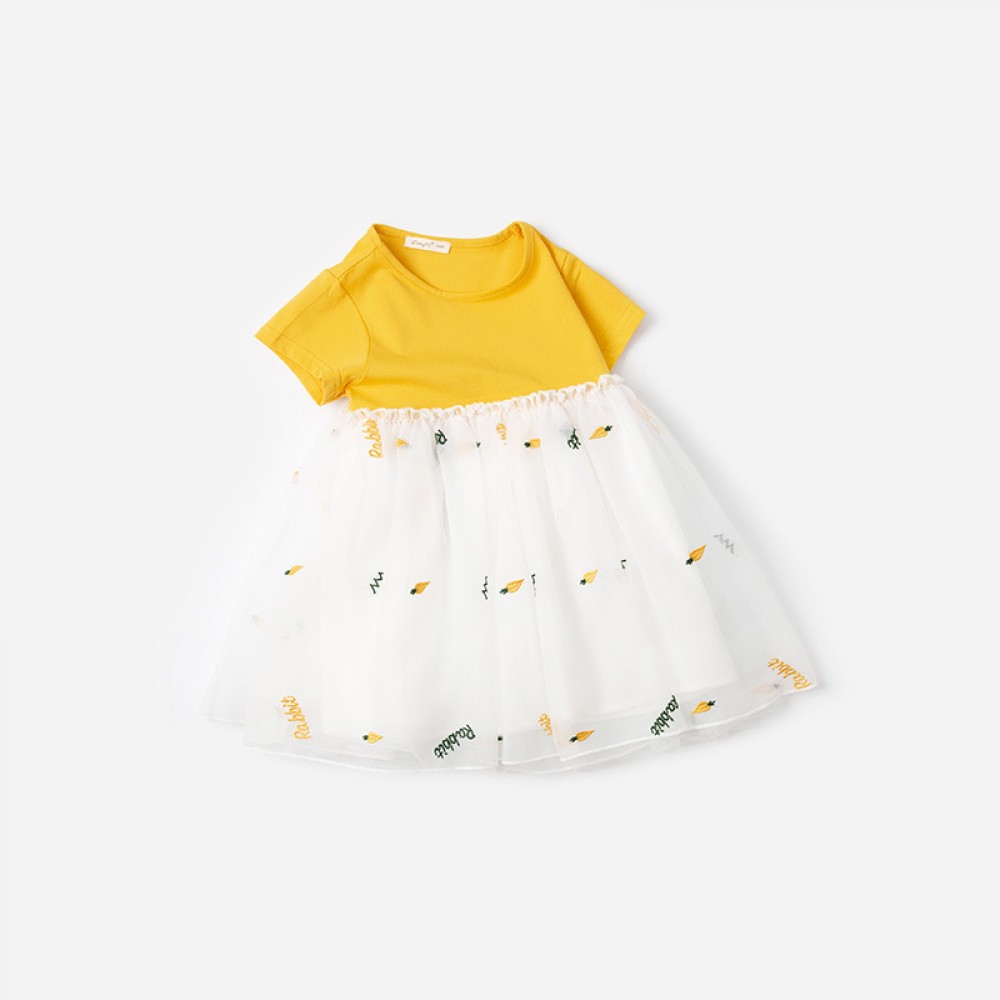 Summer new carrot embroidered mesh yarn girl dress children's clothing puffy mesh yarn princess dress