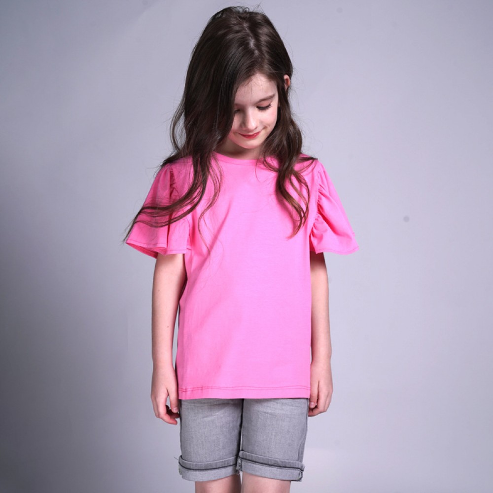 Summer new children's short-sleeved T-shirts boys and girls solid color wild t-shirts big boys knitted cotton shirts