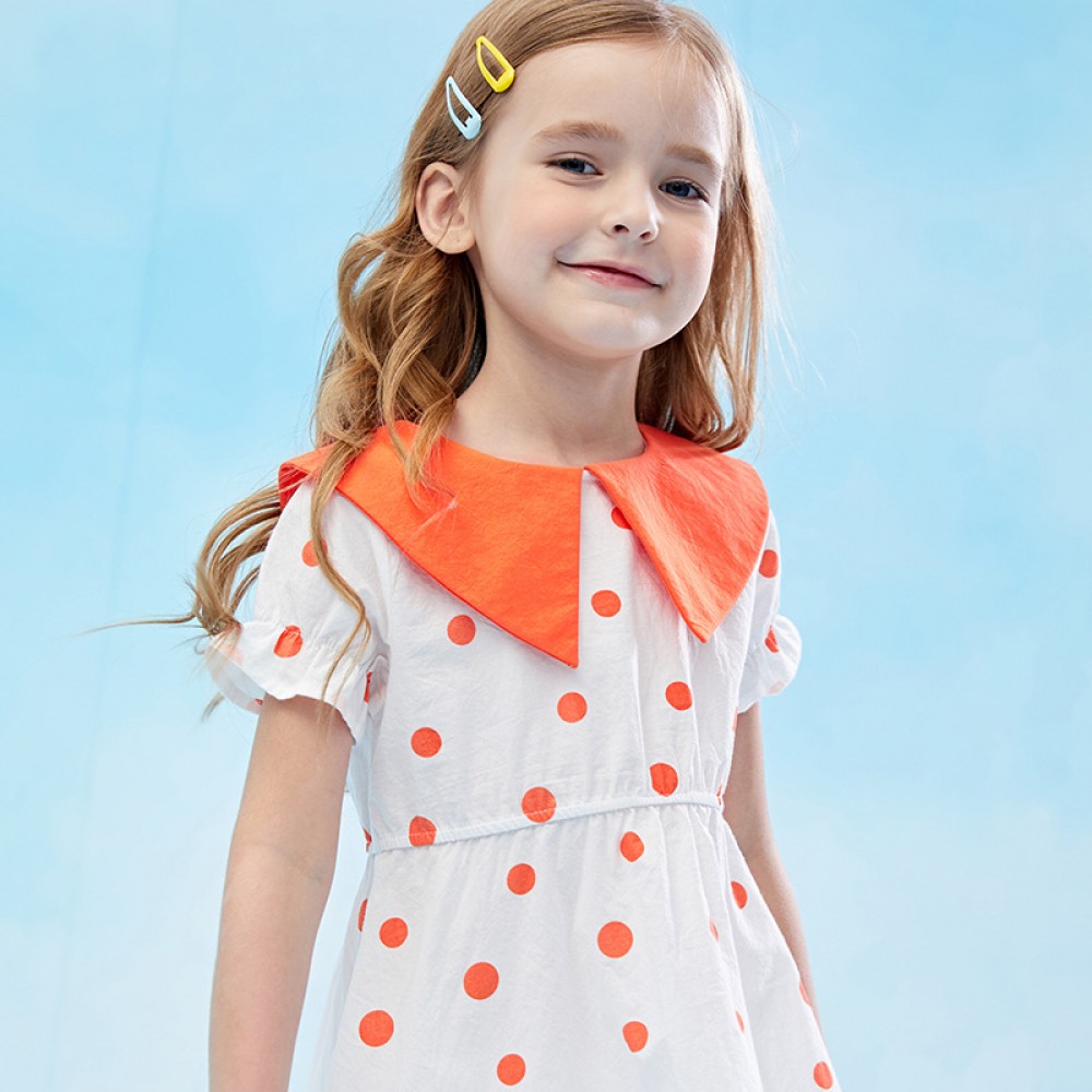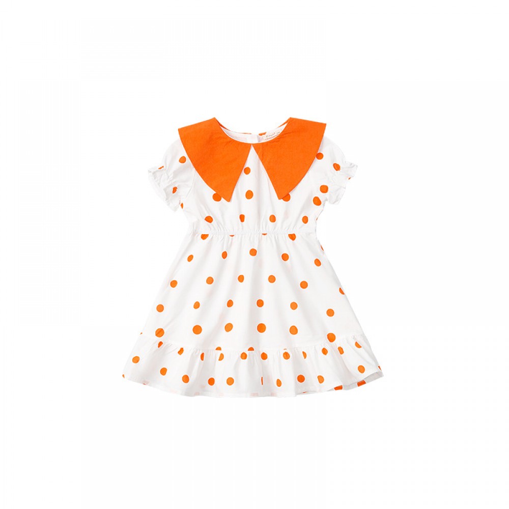 Summer new children's skirt children's clothing color-set doll lapel fresh and playful polka dot girl dress