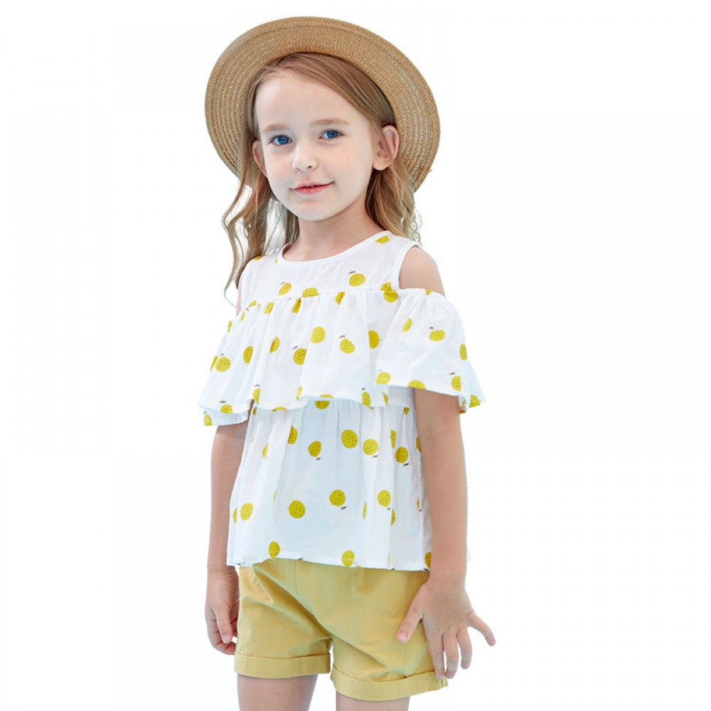 Summer new children's suit children's clothing strapless tops shorts fruit print girls suit