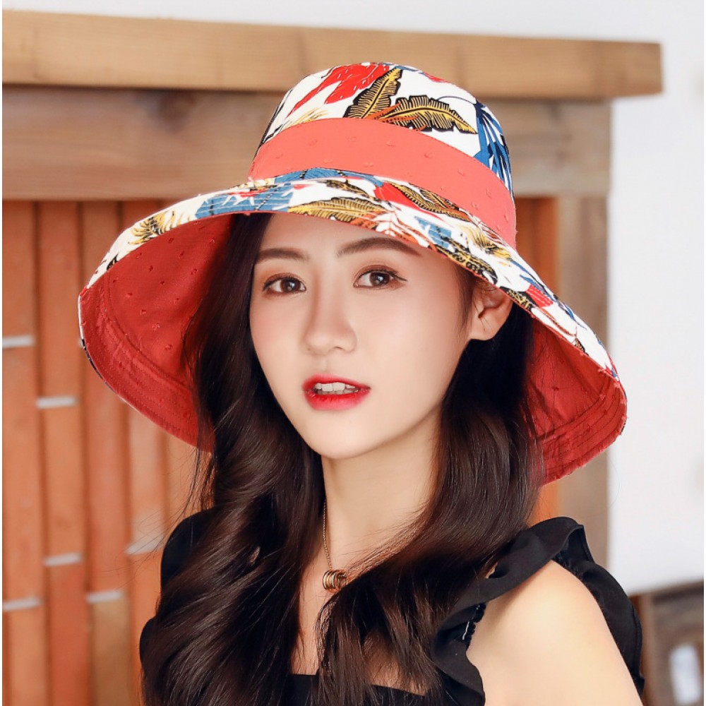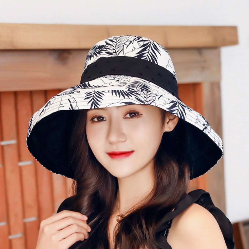 Summer new cotton and linen double-sided wear fisherman hat female outdoor sunscreen sun hat literary lattice pot hat