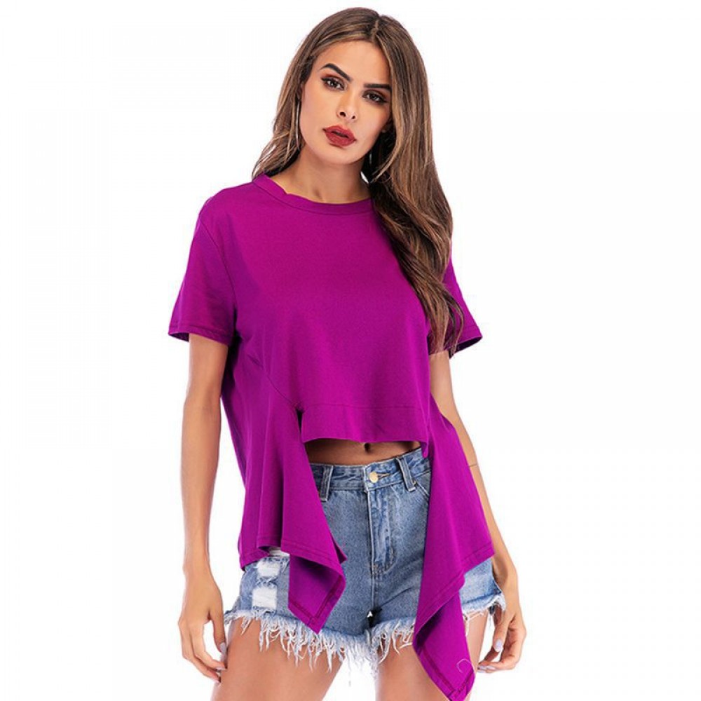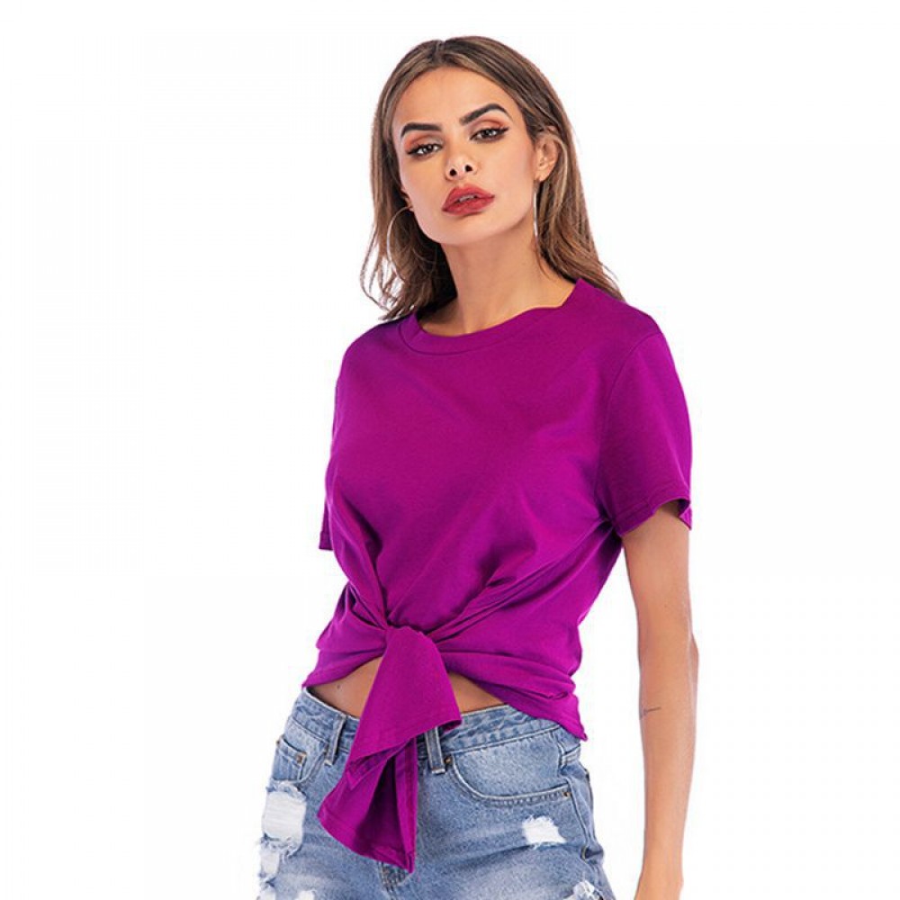 Summer new cross knotted round neck short sleeve T-shirt women's shirt loose irregular bottoming shirt
