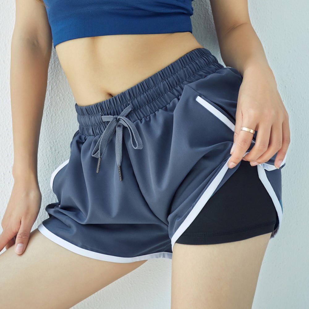 Summer new fake two-piece sports shorts female pockets anti-glare loose and quick-drying yoga fitness running leisure