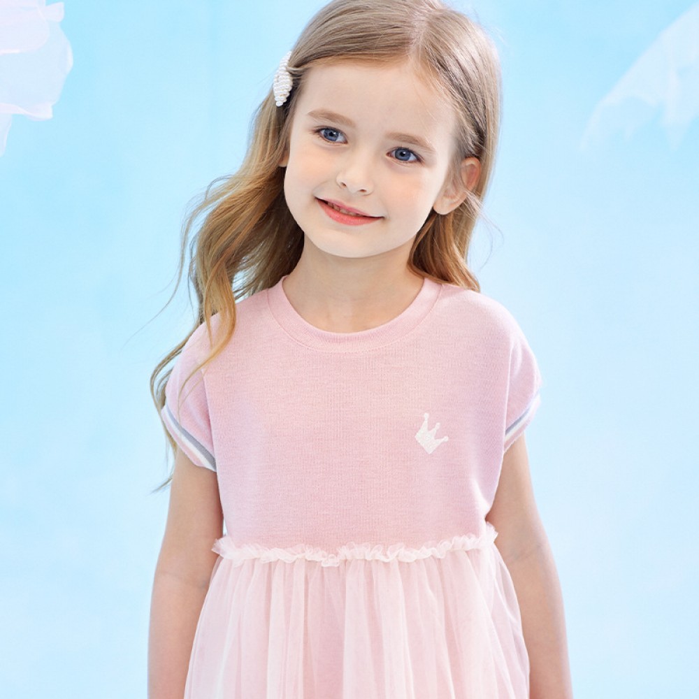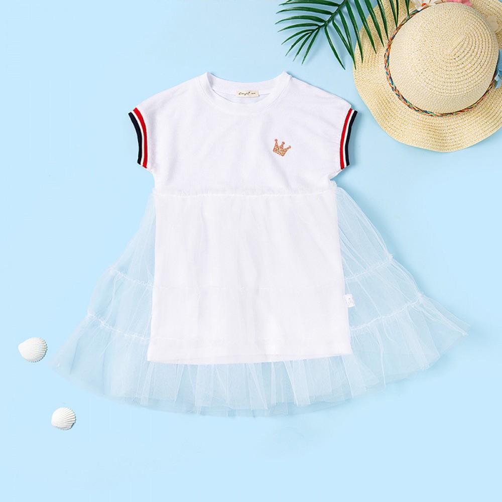 Summer new fluffy mesh yarn princess dress children's casual knit crown print girl dress