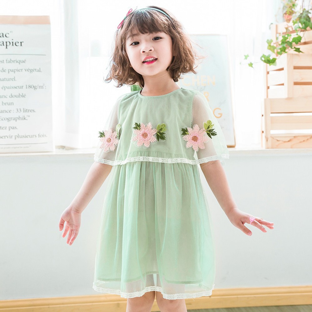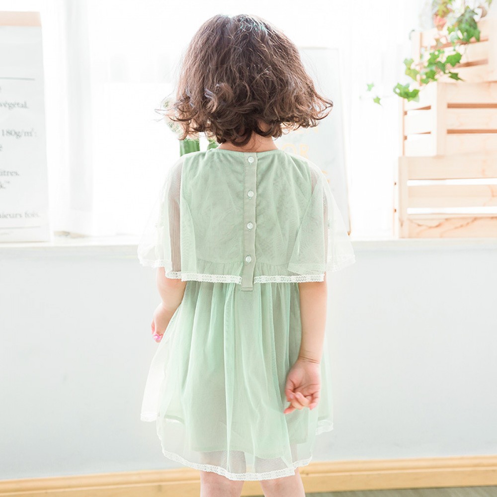 Summer new girl's dress children's clothing embroidery applique cape fantasy mesh princess dress