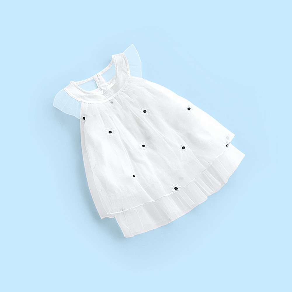 Summer new girl puffy princess dress children's clothing fungus lace white embroidered mesh dress