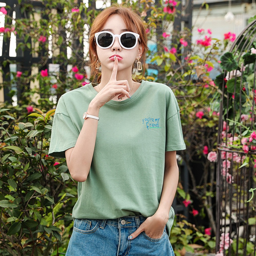 Summer new large size women's solid color printing bottoming shirt women's shirt loose short-sleeved t-shirt women