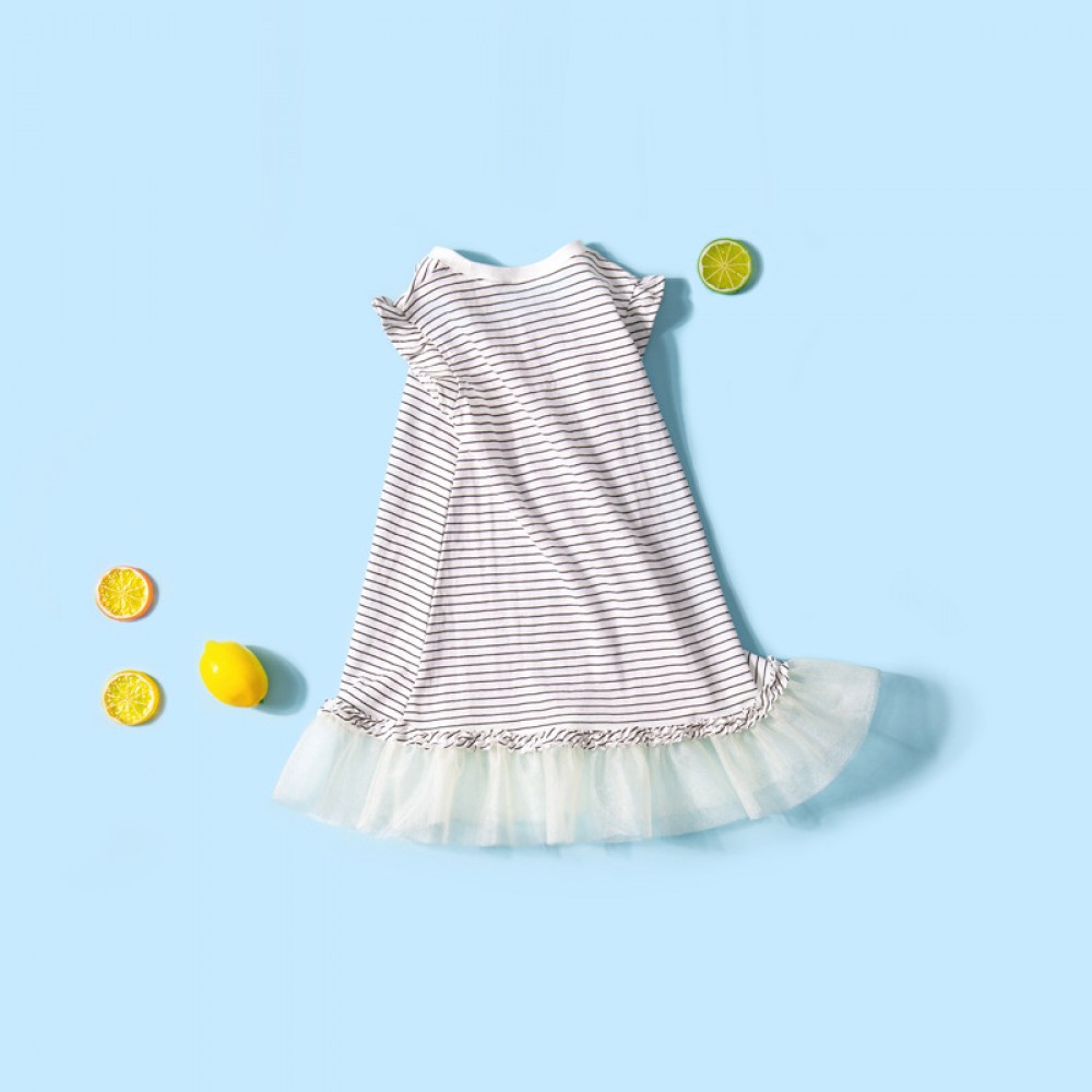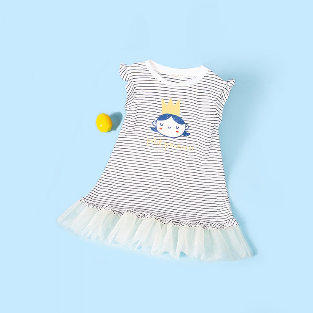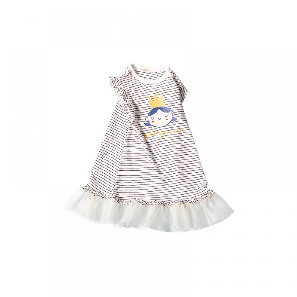 Summer new puffy princess skirt children's clothing cartoon print striped girl dress