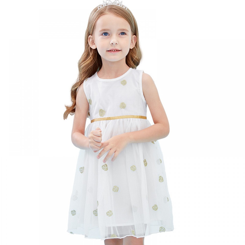 Summer new sleeveless rose embroidered gauze puffy princess dress children's dress girls dress