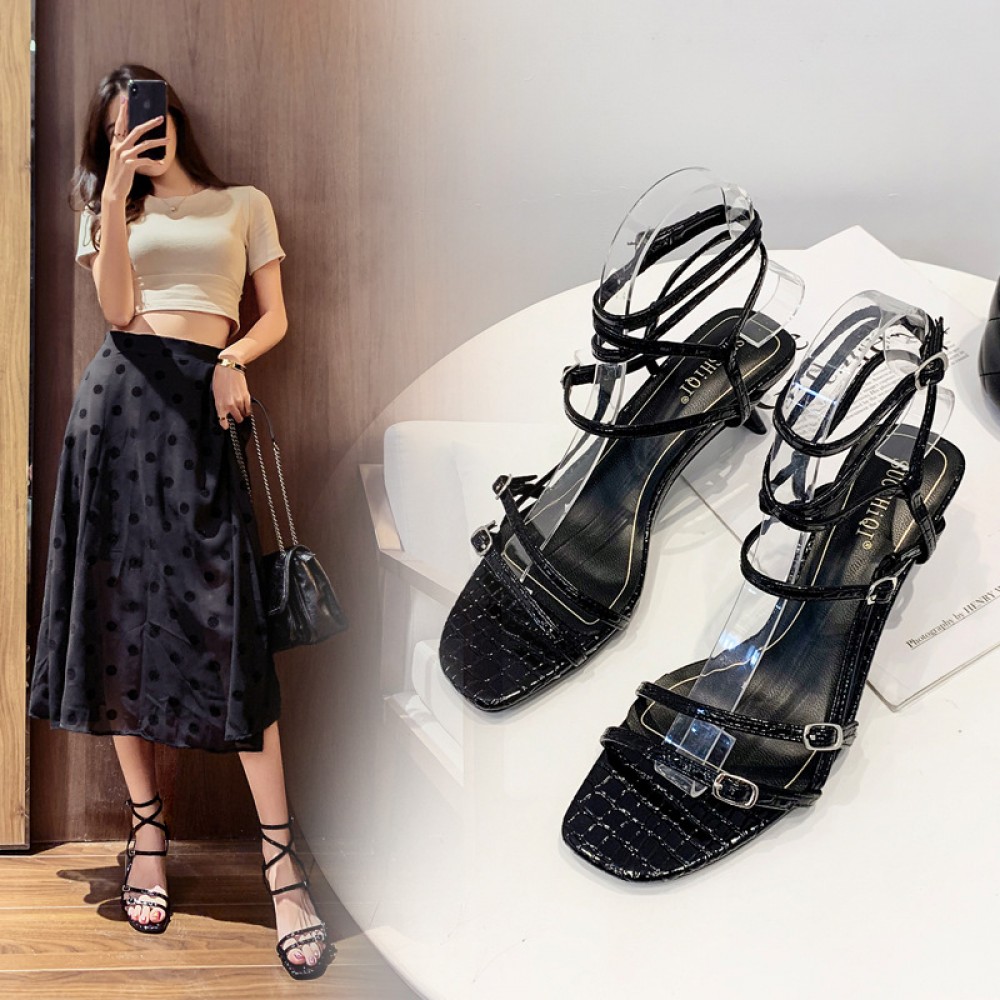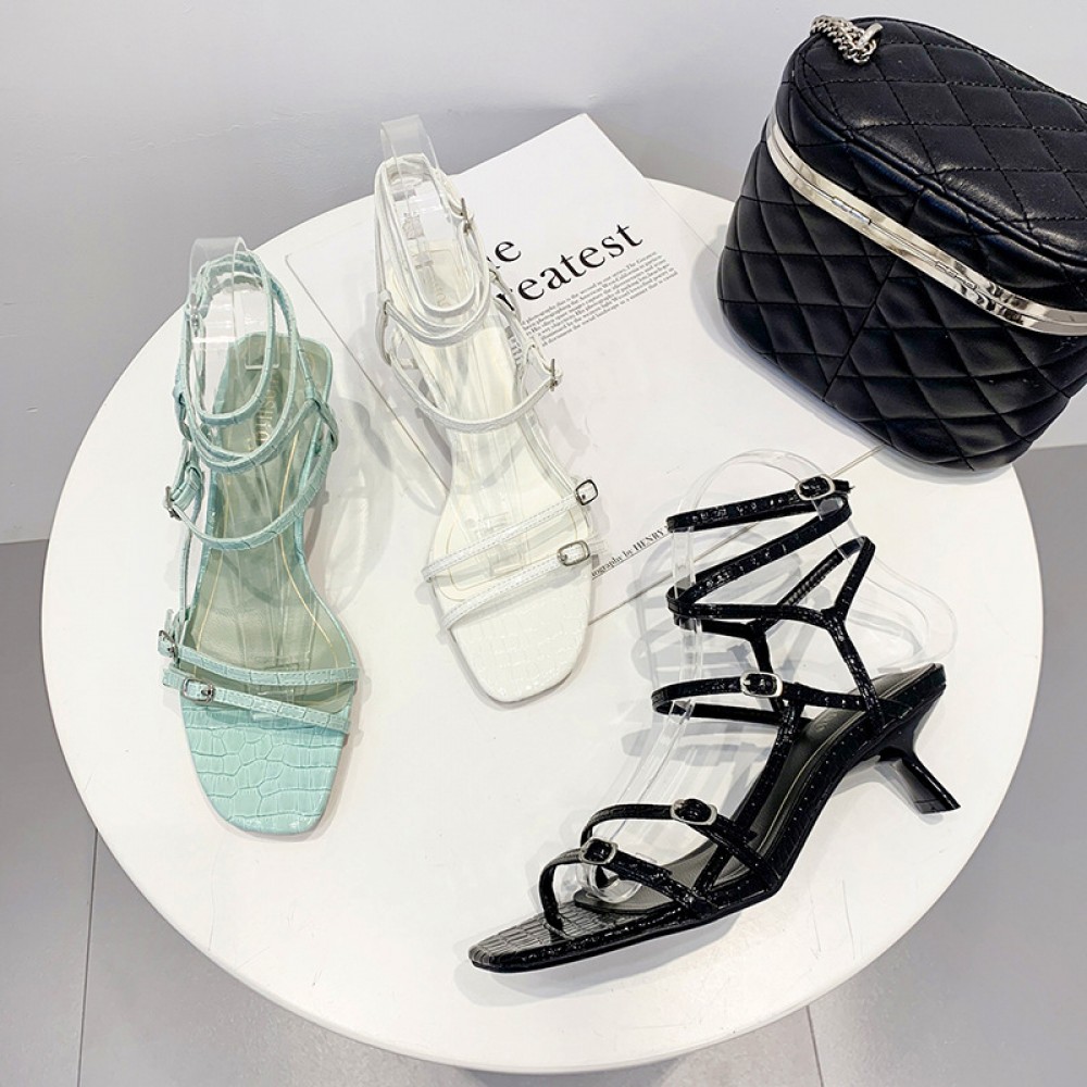 Summer new style Roman thin stone pattern cat heel OL dress female sandals
