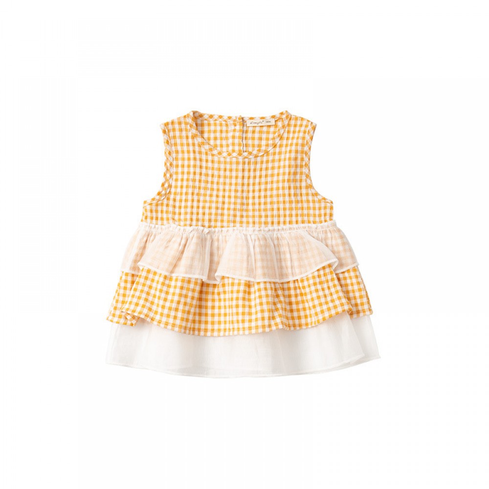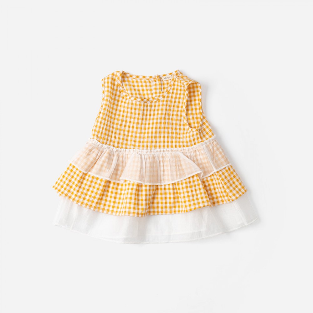 Summer new three-layer skirt grid children's skirts children's clothing retro temperament small shirt