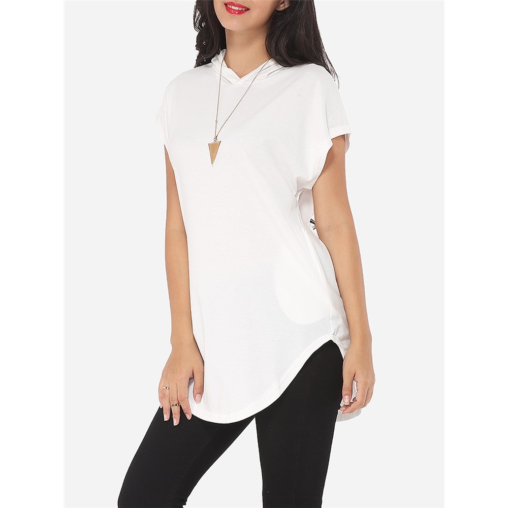 Summer new V-neck loose large size women's shirt hooded sweater short-sleeved t-shirt