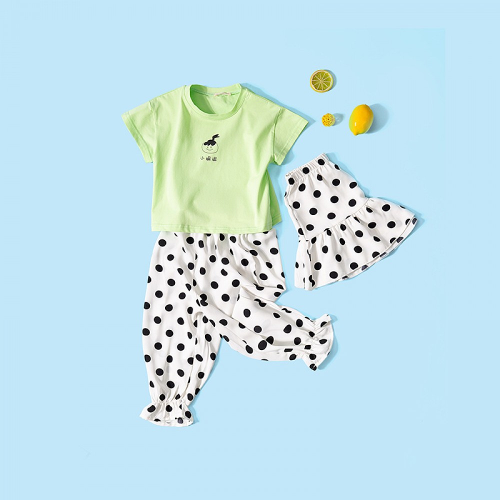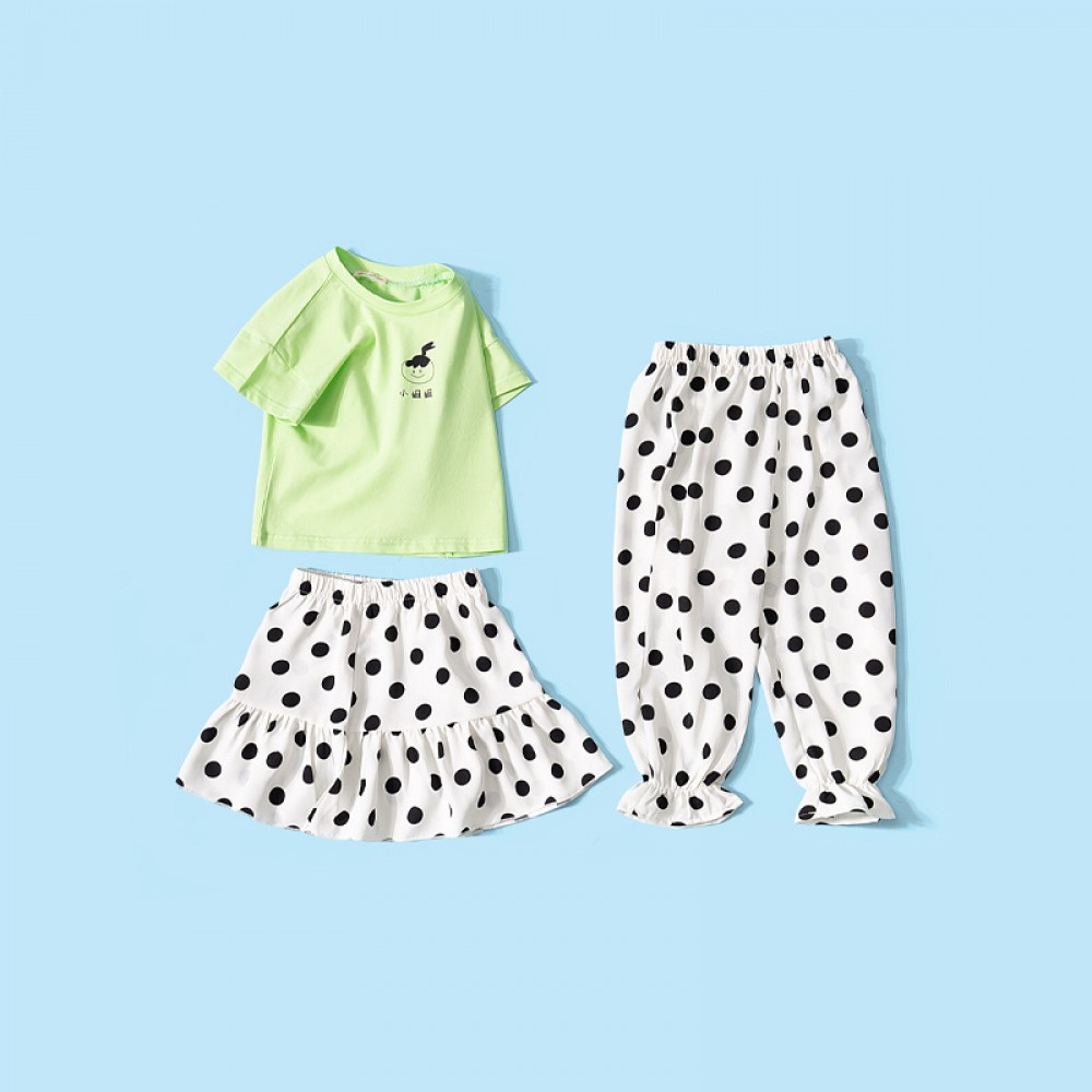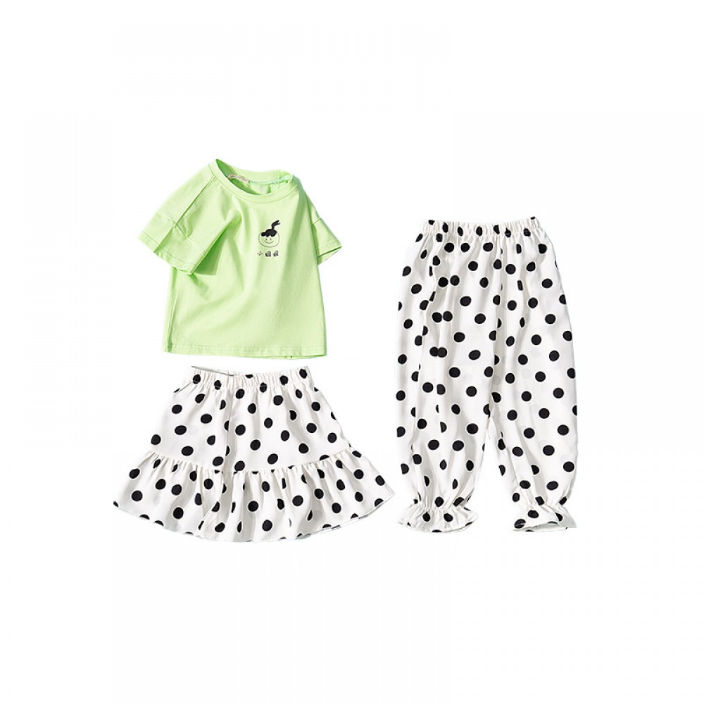 Summer new wave point children's suit children's clothing bright color cartoon three-piece girl suit