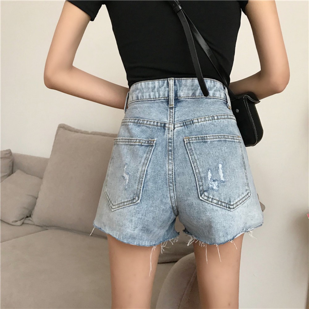 Summer style plus size loose wild edge ripped hole washed denim shorts women