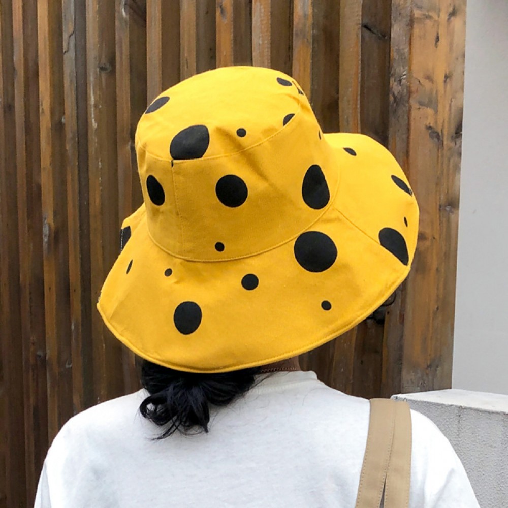 Sun hat female new polka dot cotton and linen double-sided wear fisherman hat summer sun protection big hat folding basin hat