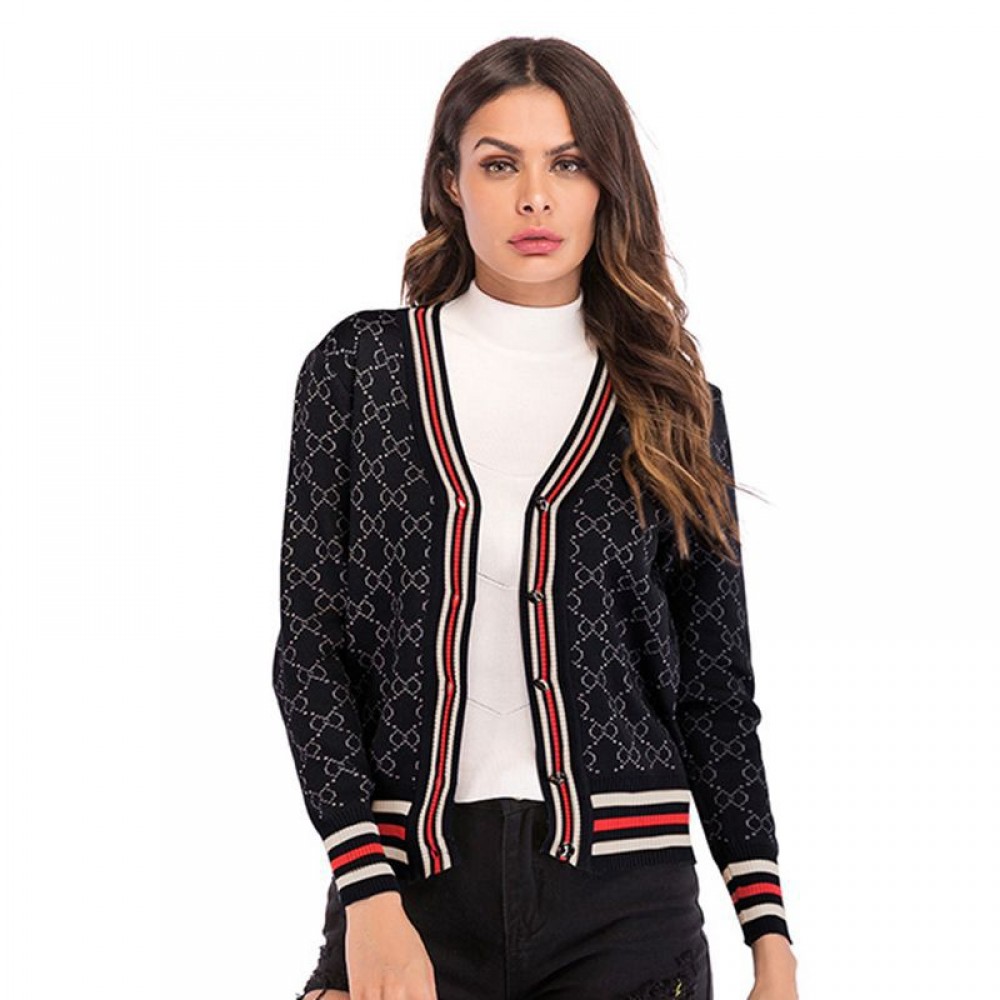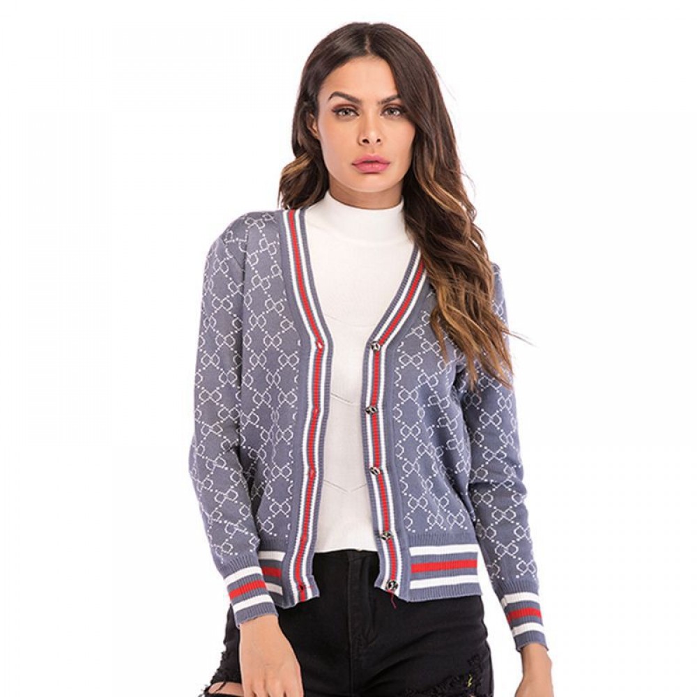 Sweater cardigan women's spring new women's color matching sweater coat plaid long sleeves loose outside