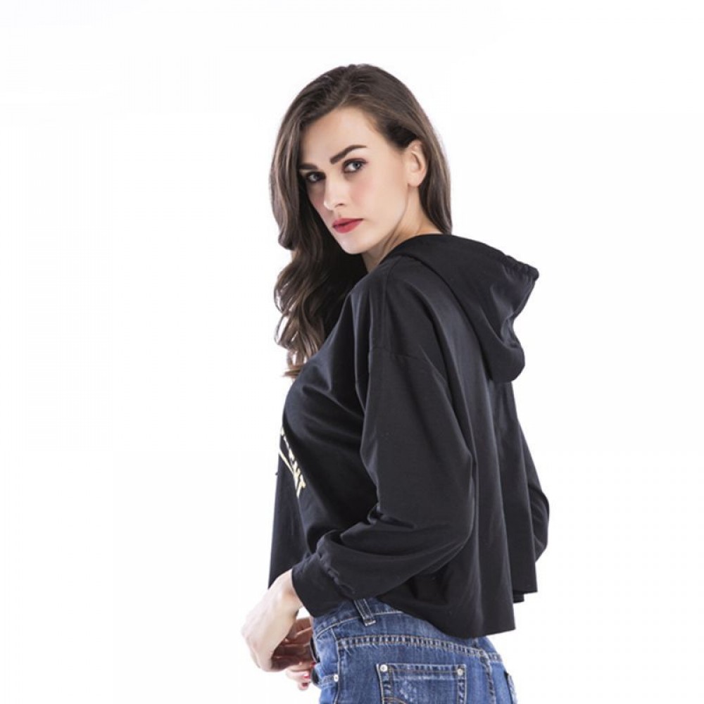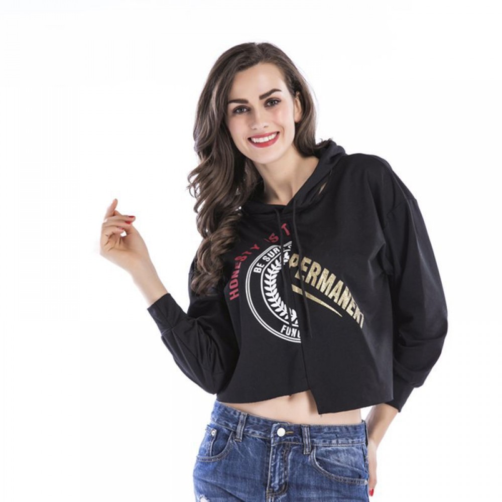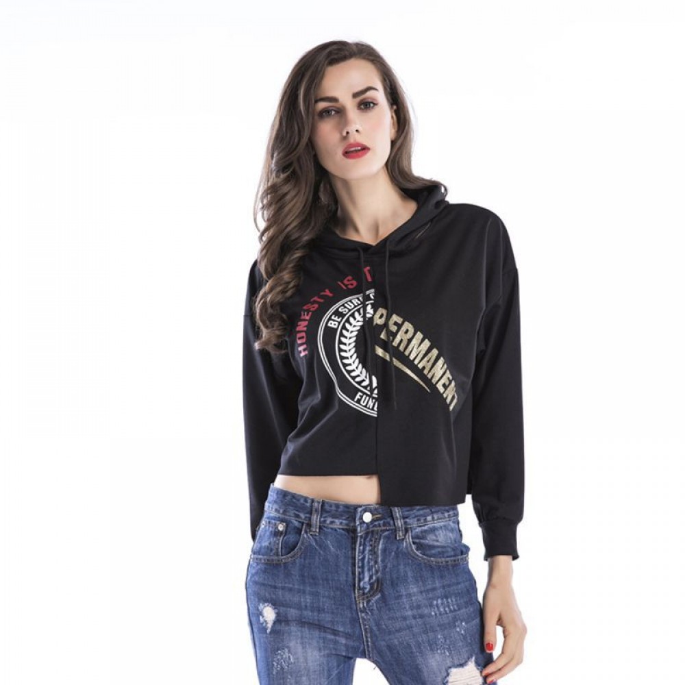 Sweater female spring new personality irregular short hooded sweater casual loose large size T-shirt