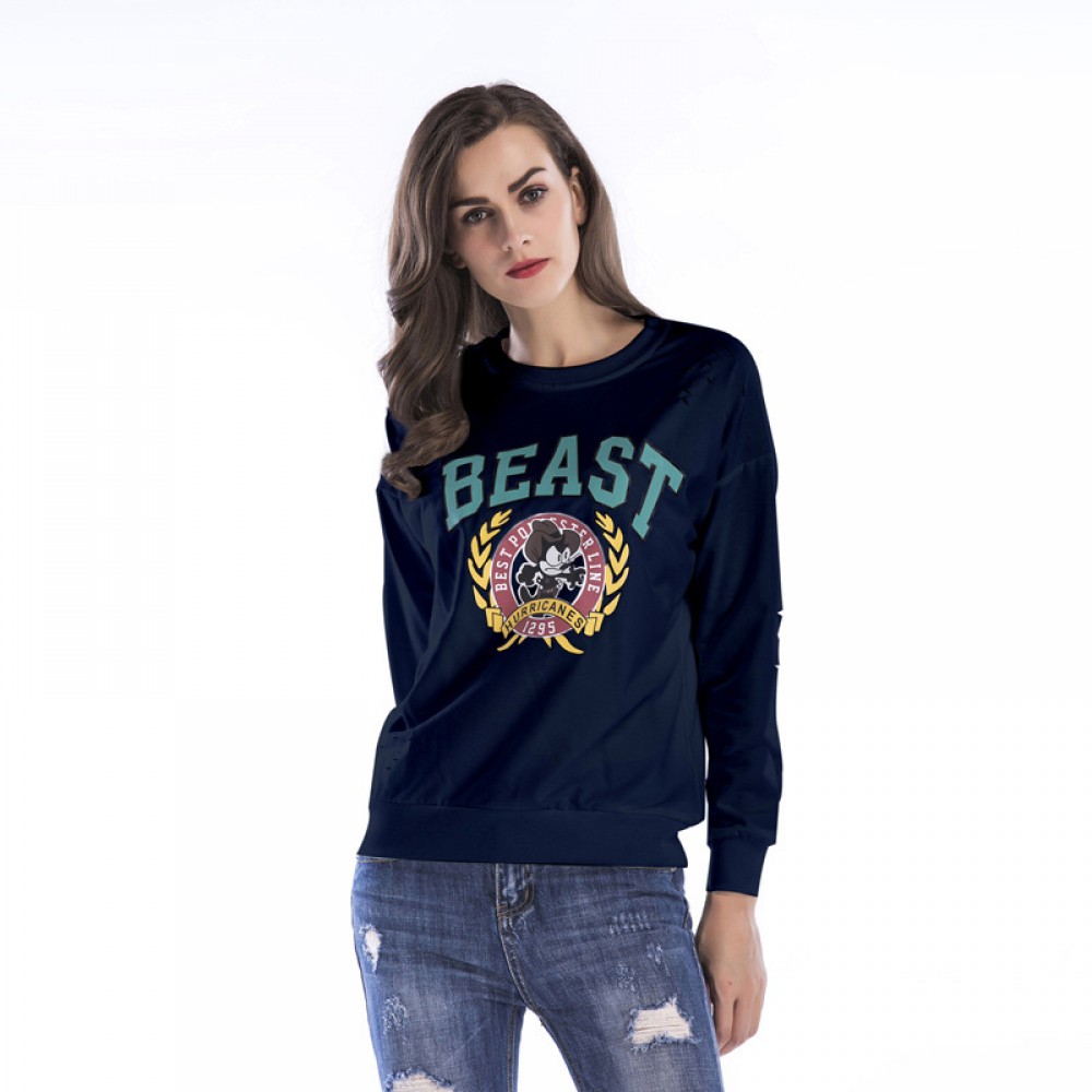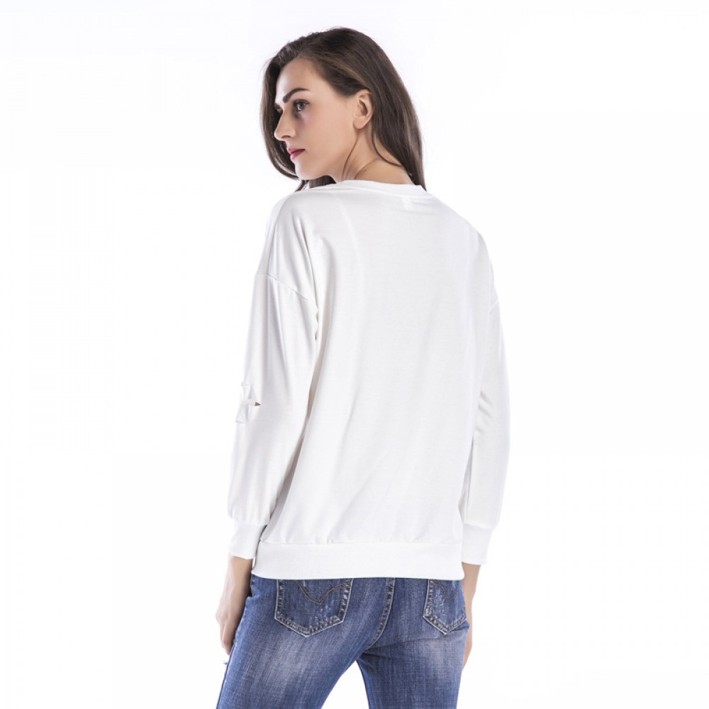 Sweater women's new round neck hole print casual loose large size women's shirt
