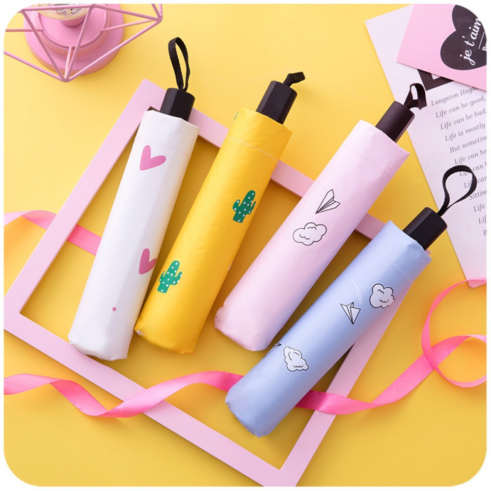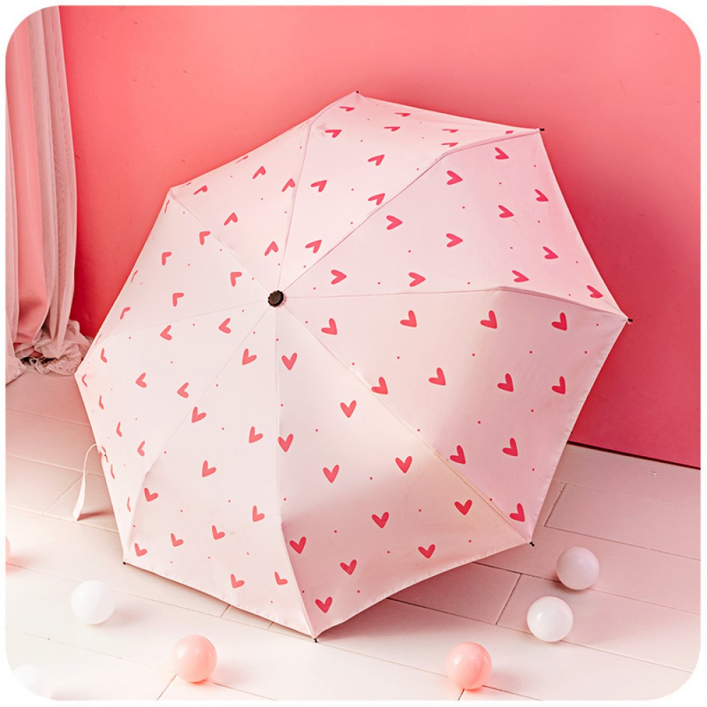 T64 girl heart umbrella folding small fresh literary sun umbrella