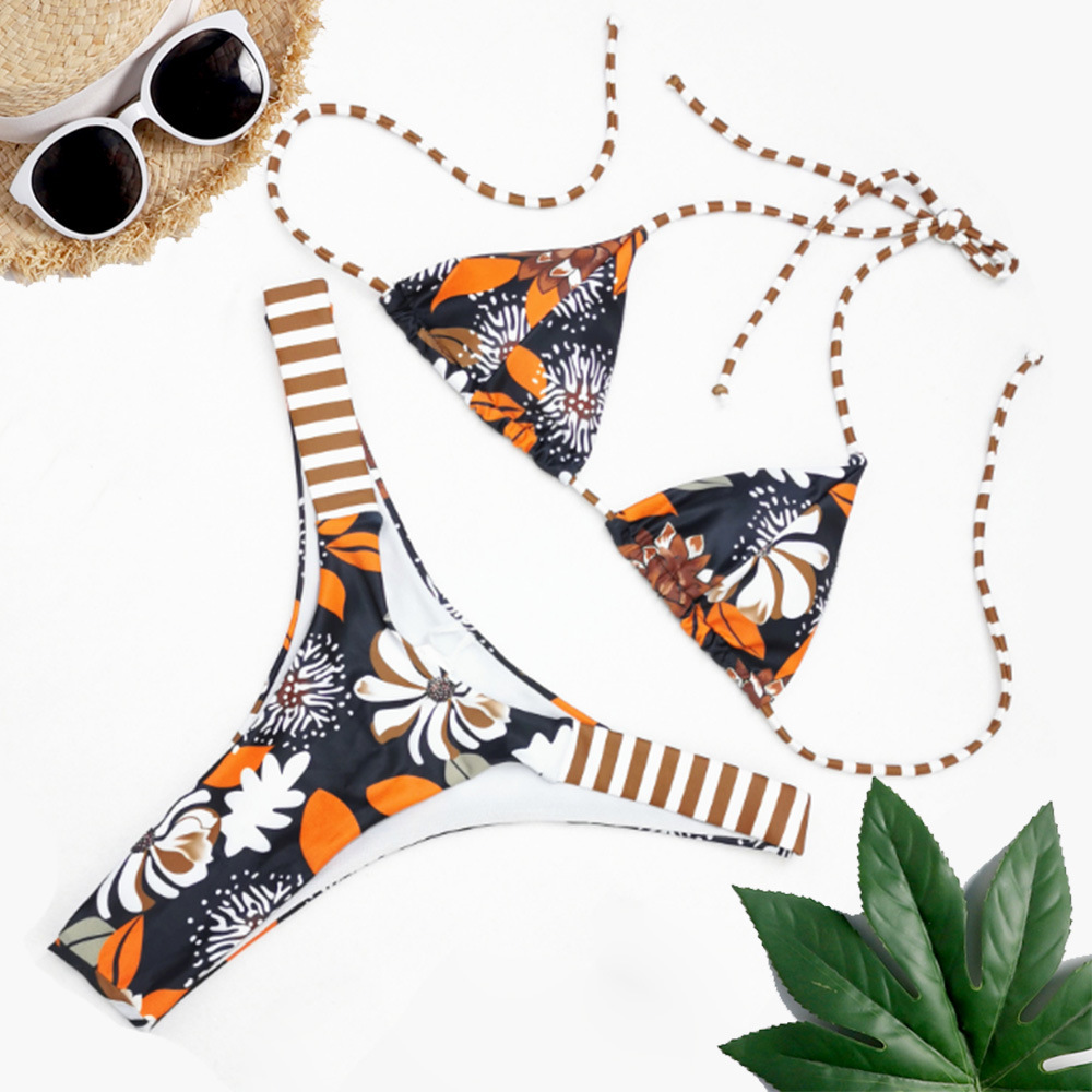 The new bikini swimsuit cross neck lace printing women