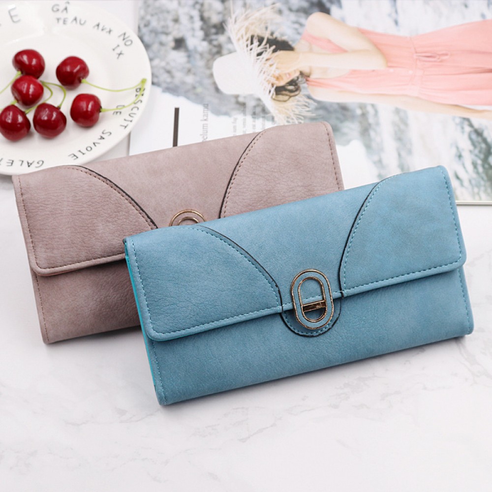 The new ladies wallet Korean version of the multi-card bit mid-length clutch bag fashion wild tri-fold buckle handbag