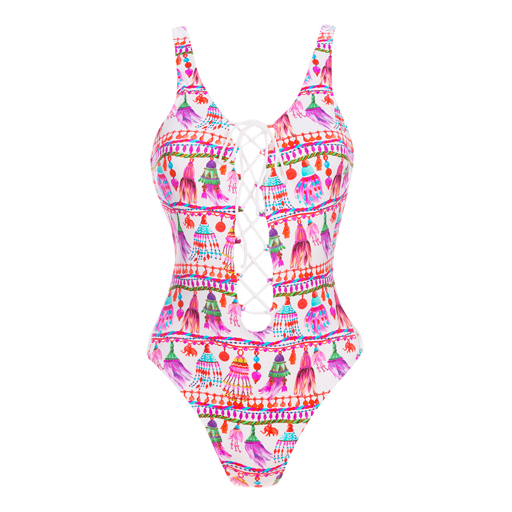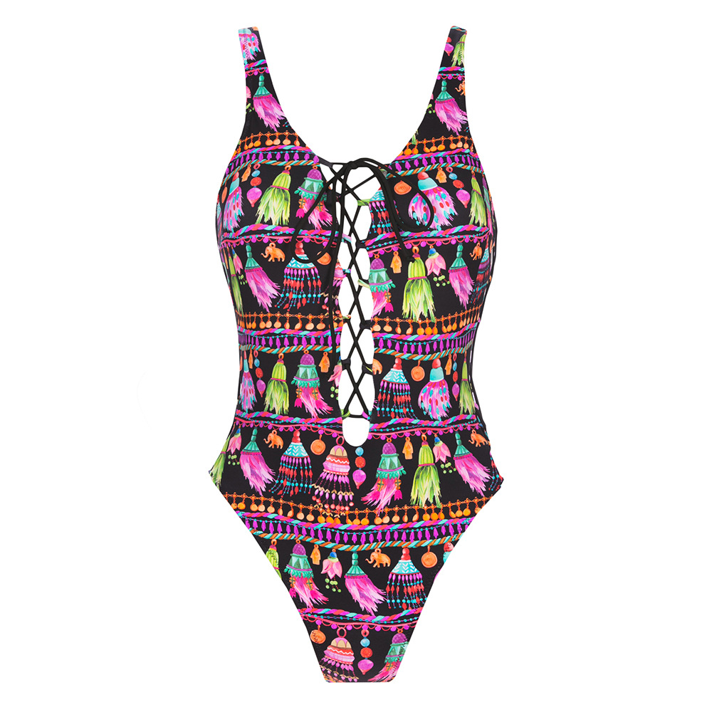 The new one-piece swimsuit with front and back lacing medium and large size one-piece swimsuit