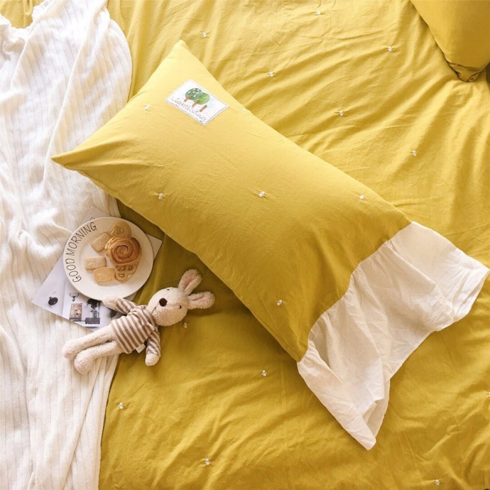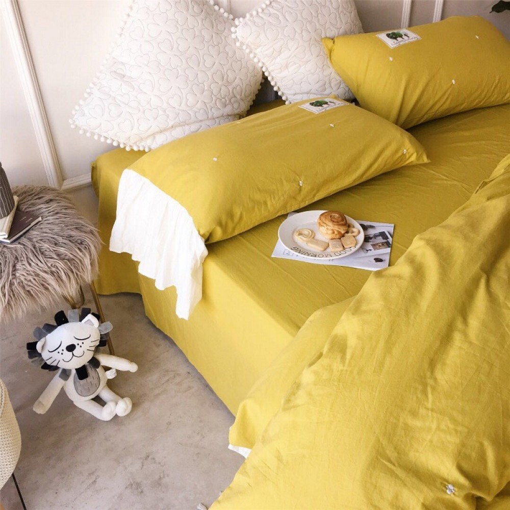 Washed cotton solid color four-piece suit cotton simple double four-piece bedding bed sheet quilt cover