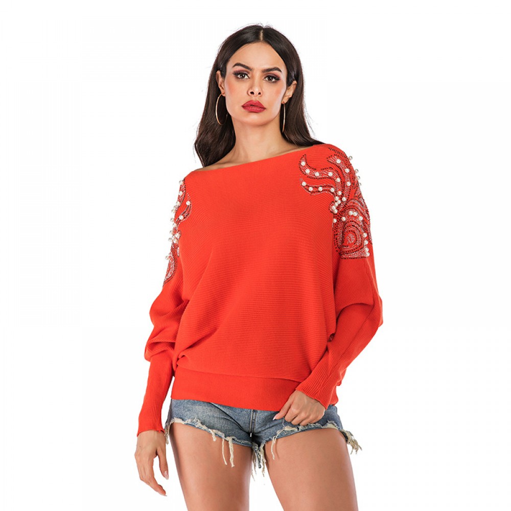 Women's autumn and winter sweaters loose solid color beaded sweater coat