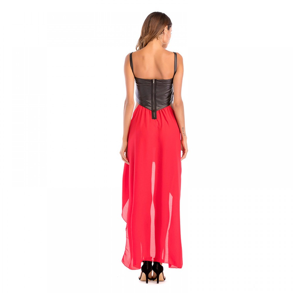 Women's new stitching chiffon suspender dress summer waistless dress