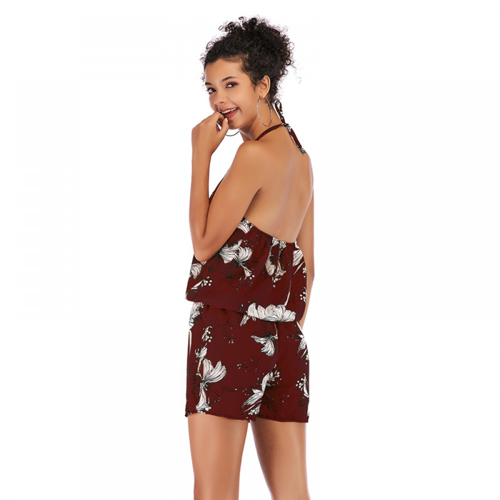 Women's Spring / Summer Sleeveless Printed Jumpsuit Halter Halter Sexy Shorts