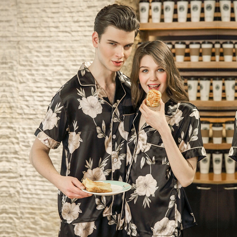 Yaoting classic silk couple pajamas female autumn short-sleeved shorts home service suit TZ716 717