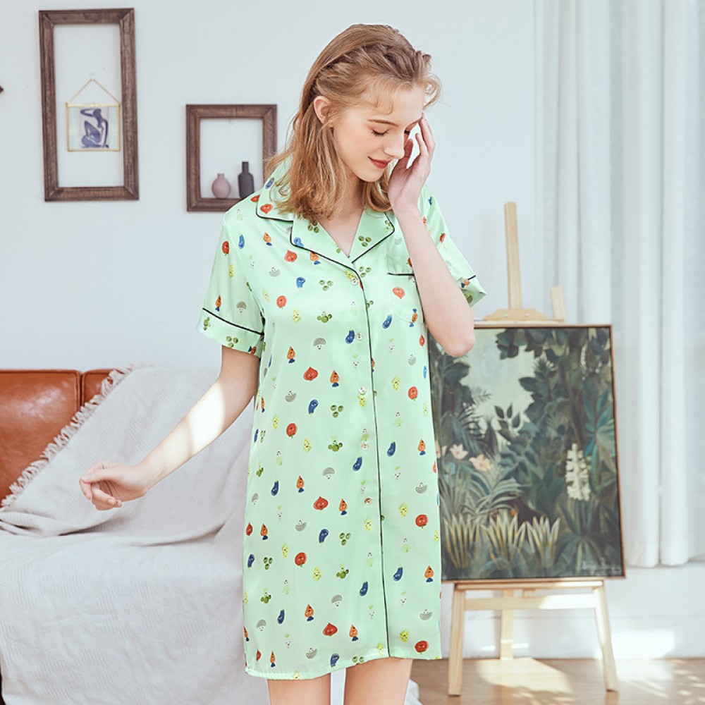 Yaoting explosion models small fresh silk ladies pajamas spring and summer nightdress pajamas home service SQ1157