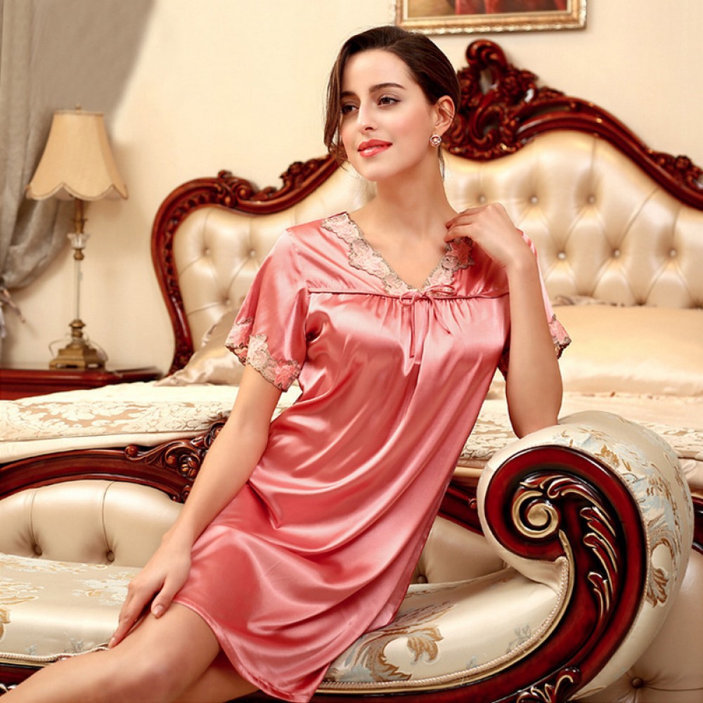 Yaoting silk pajamas ladies summer V-neck short-sleeved nightdress loose and comfortable home service